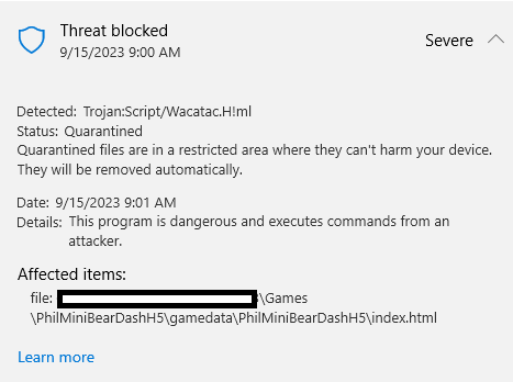QuoteIs Wacatac H ml a safe Trojan script?